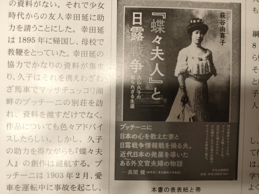 そのほか、前編集長で作曲家の中島洋一先生が、拙著『「蝶々夫人」と日露戦争』を3ページにわたって、丁寧にレビューしてくださっておられました。わたくしがこの本でお伝えしたかったことをよくよく、お汲み取り下さったレビューに感激いたしました。