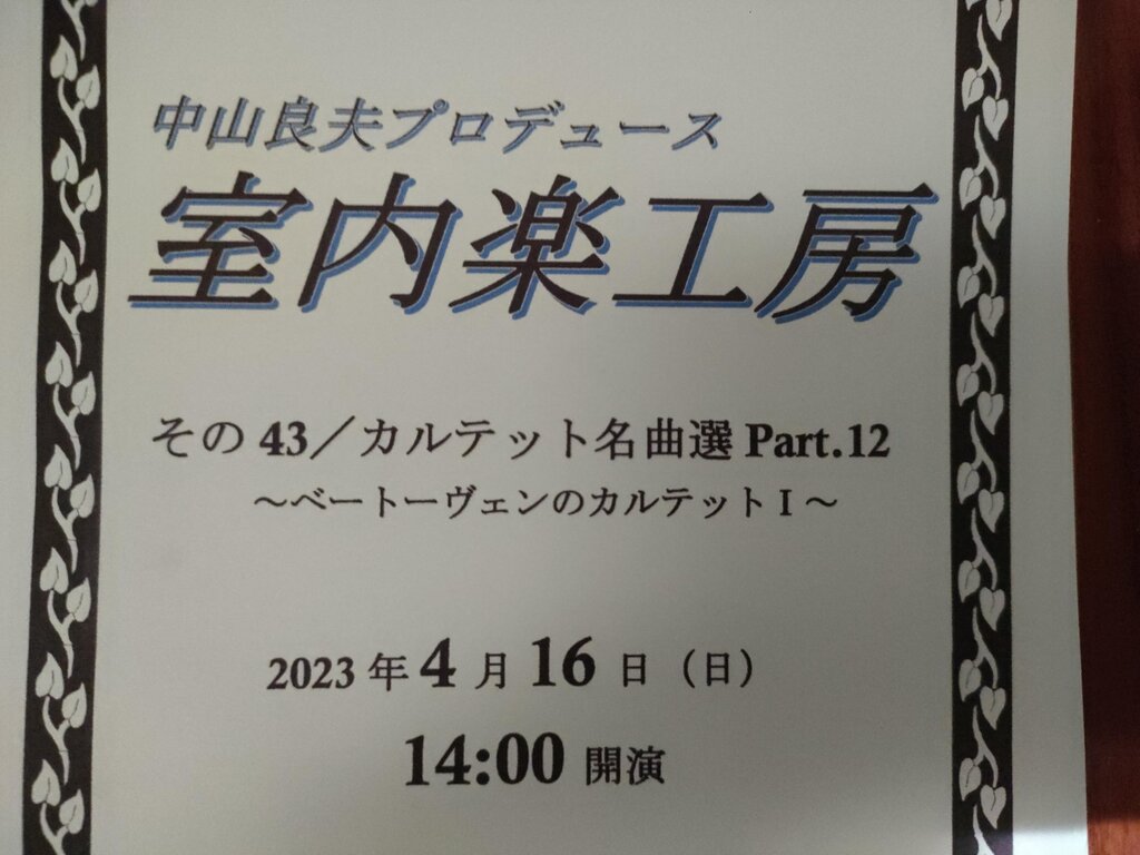 オーケストラ・プレイヤーとしてつねにあれやこれやの作品に対応なさりつつ、室内楽でも、原点のベートーヴェンを立派に弾きこなされて、弦楽四重奏作曲家としてのベートーヴェンの足取り、意気込み、実験精神、模索の成果を、あますところなく伝えてくださったことに、ただただ、感嘆して拝聴しておりました。