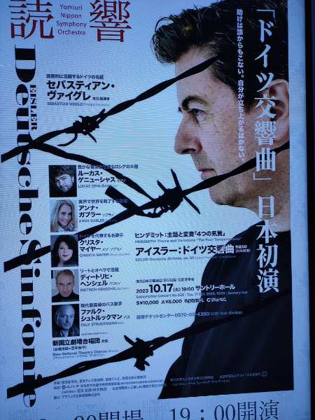 昨10月17日の晩、サントリーホールで開催された読売日本交響楽団第632回定期演奏会で、同団常任指揮者のマエストロ・セバスティアン・ヴァイグレが、ハンス・アイスラー(1898-1962)の『ドイツ交響曲』の日本初演を実現されました。