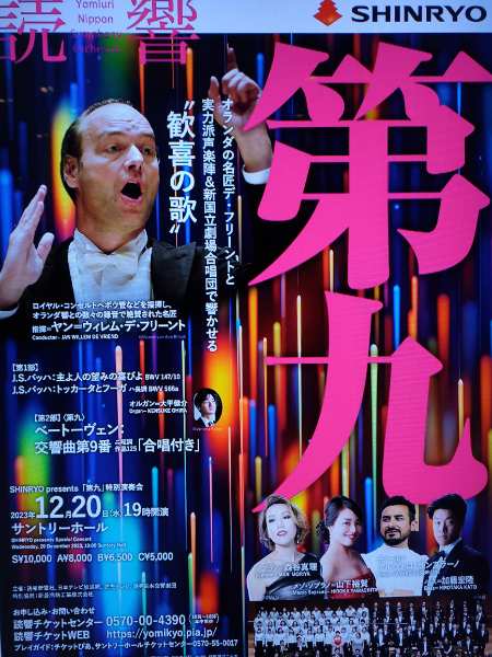 昨日は、昼間、小平の講座で、スクロヴァチェフスキ指揮・読売日本交響楽団2009年のブルックナー9番を鑑賞いたしました後、夕刻、サントリーホールへ出掛けまして、ブルックナーから14年後の同団の今年の第九を聴かせていただいてまいりました。