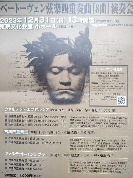 大晦日のたびに、といえば、近頃の大晦日は、東京文化会館の大ホールでは、ベートーヴェンの全交響曲の連続演奏会が、小ホールでは、弦楽四重奏曲の中期・後期作の連続演奏会が開かれるのが恒例となりました。