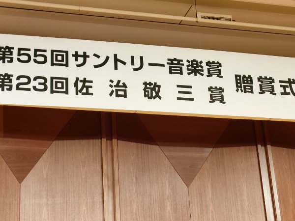 本日5月13日夕刻、サントリーホール・ブルーローズにおいて、第55回サントリー音楽賞、第23回佐治敬三賞 授賞式とレセプションがございました。1969年制定のサントリー音楽賞は、毎年、わが国の洋楽の発展に最も顕著な功績のあった個人、または、団体に贈られる賞で、今回は作曲家の近藤譲氏に贈られました。