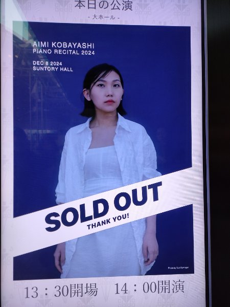 12月8日午後、サントリーホールで小林愛実さんのピアノ・リサイタルを拝聴いたしました。開演前に、小林さんご自身によるアナウンスが流れ、このリサイタルが2年ぶりの同ホールでのリサイタルであること、また、直前に、3年ぶりのCDアルバムがリリースされたこと、そのタイミングでリサイタルが開けて嬉しいとの言葉がインフォーメーションされました。