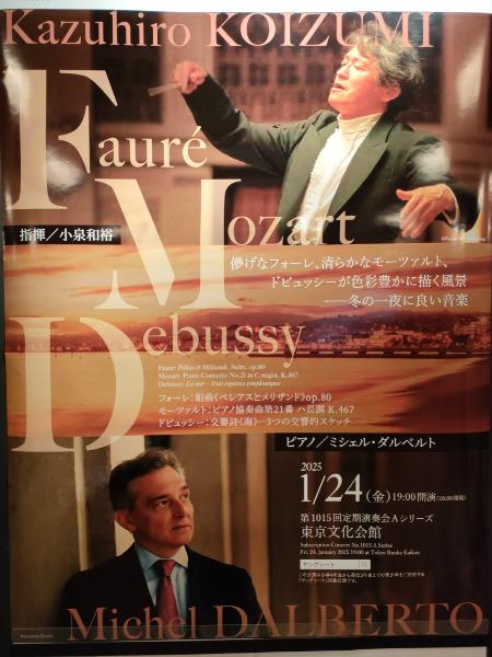 1月24日の晩、東京文化会館大ホールで開催された、東京都交響楽団第1015回 定期演奏会Aシリーズを拝聴いたしました。指揮は小泉和裕マエストロ。ピアノのソリストは、現代フランス屈指の名手、ミシェル・ダルベルトさん。コンサートマスターは矢部達哉さん。