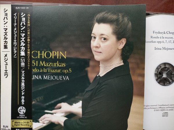 時折、お伝えしている、イリーナ・メジューエワさんのショパン・コンプリート全集の一環として、今月は「マズルカ集」2枚組がリリースされました。今、お聴きしながらこれを書いておりますが、ひとことで感想を申しあげるなら、ポーランドの中南部各地の土着の舞曲であったマズル、クアヴィアーク、オベレクを統合融和させたショパンのピアノ・マズルカに、イリーナさんは近いルーツを持つピアニストとして、脈々とした命を吹き込まれた、ということに尽きます。