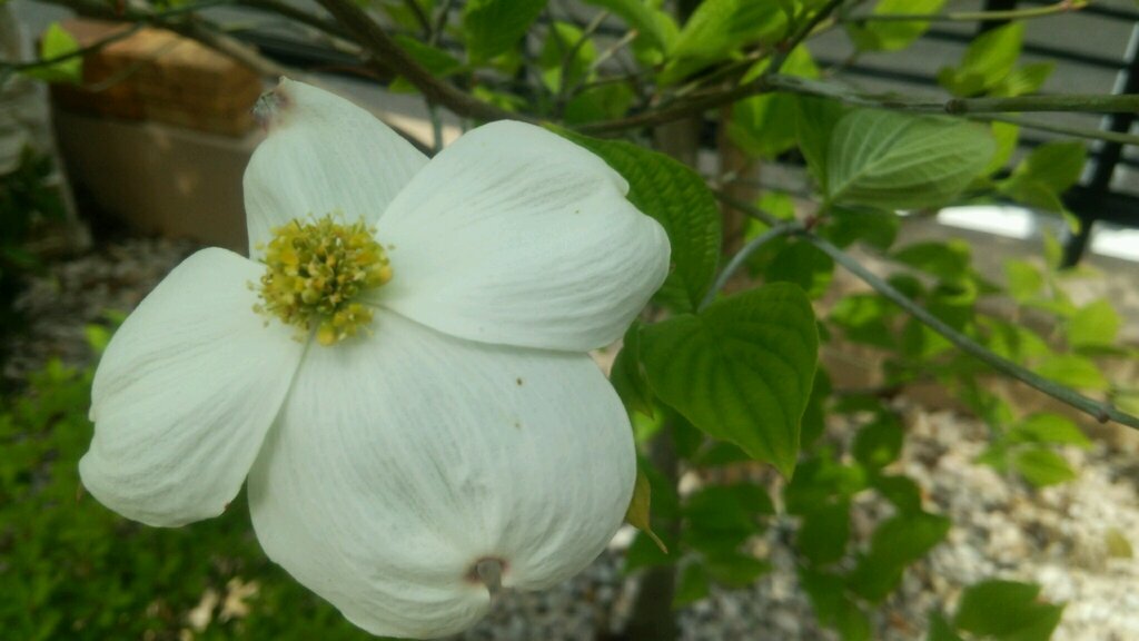 庭に咲いた白のハナミズキを先生に。