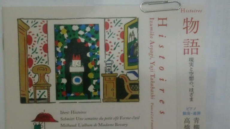 曲目は、青柳さん独奏によるイベールの『物語』10曲。青柳さんが朗読ばかりか、ピアノの高音部を担当して高橋悠治さんと連弾なさったフローラン・シュミットの『眠りの精の一週間』、お二人の連弾によるラヴェル『マ・メール・ロワ』、そして、ダリウス・ミヨーの『ボヴァリー夫人のアルバム』でした。