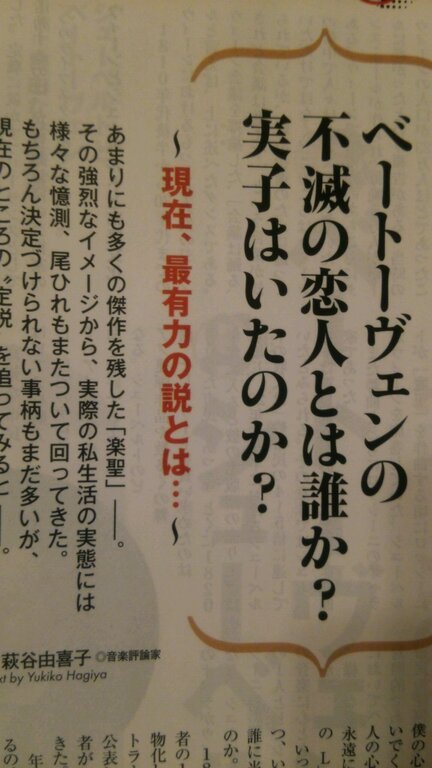 『モストリー・クラシック』今月発売号にベートーヴェンの不滅の恋人と実子問題を考察いたしました。