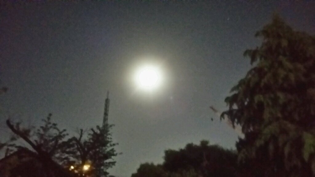 本夕、愛犬ウルフと散歩に出ましたら、東の空にややオレンジがかった大きなお月さまを発見し、わくわくいたしました。しばらくして22時少し前に観察いたしますと、だいぶ高い位置に昇って夕刻よりも小さくなり、色も白っぽくなっていましたが、プロポーションのよさは紛れもなく満月と思い、調べてみますと、やはり本日4月27日は満月で、正確に言えば12:33が満月だったということです。