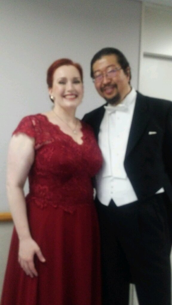 クールドさん、コニエチュニーさんは何度も拝聴してその素晴らしさは存じ上げていましたが、ケーラーさんは初めて聴かせていただき、骨太の歌唱力とゆたかな表現力に驚きました。2014年デビューだそうですから、まだ、お若いソプラノで、2017年バイロイトのマスター・クラスではグールドさんのクラスに参加されたとのこと、さすが、グールドさんのお弟子さんです。今後、世界的なブリュンヒルデに成長されること間違いありません。「ダニエラ・ケーラーさん」というお名前をよく覚えておこうと思いました。写真はケーラーさんと妻屋さんです。